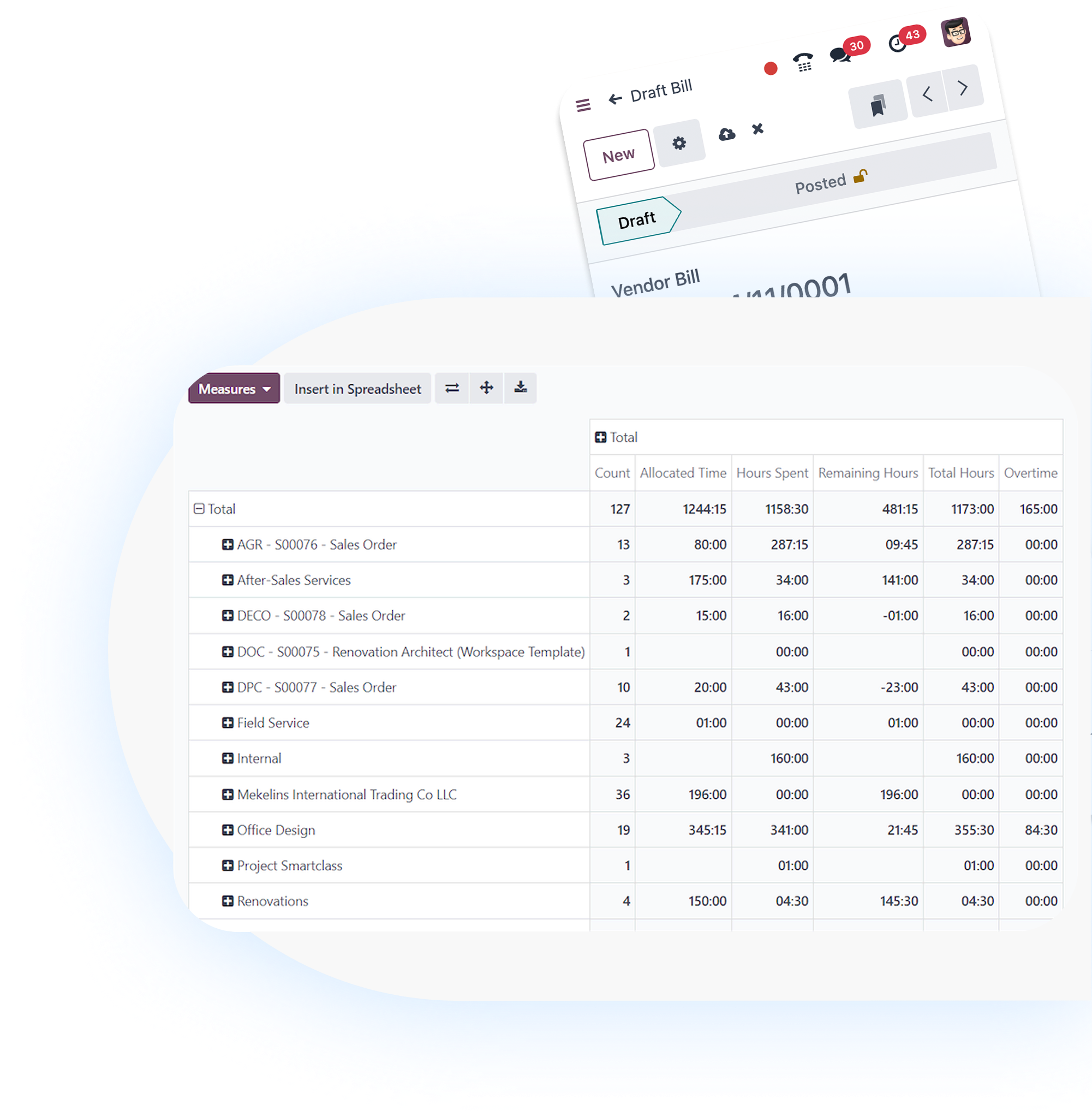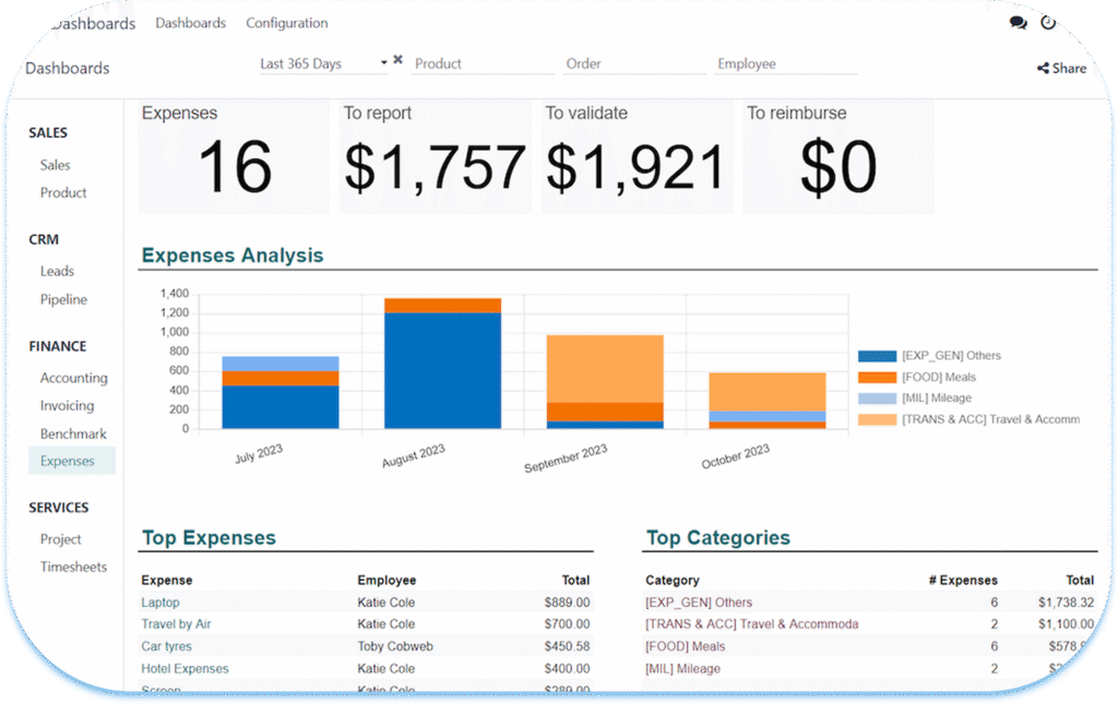 Measure supplier performance with dynamic dashboards and advanced reports. Track delivery delays, discounts, and contract profitability with built-in analytic accounting.