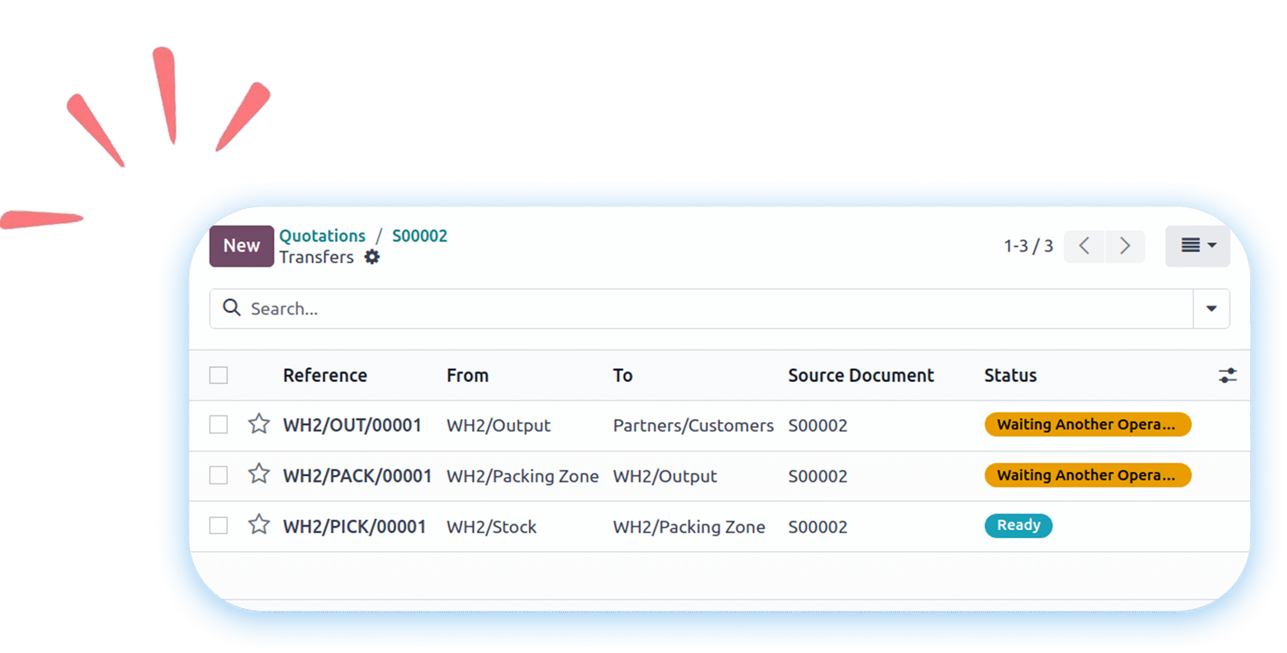 Organize your warehouse with Odoo’s double-entry inventory system. No messy input/output steps, just smooth movement between locations. Get faster process times, fewer errors, and complete control over every stock move.