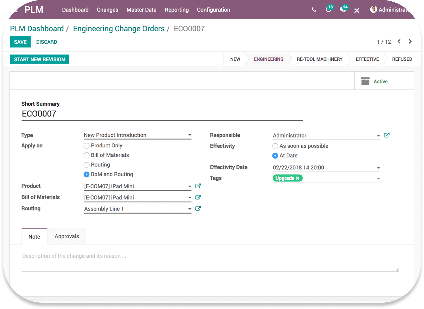 Attach drawings, worksheets, and quality docs directly to BoMs or routings.