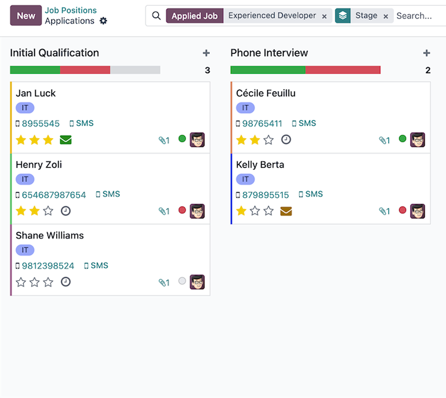 Define recruitment stages your way — pre-screening, interviews, offer, onboarding.
