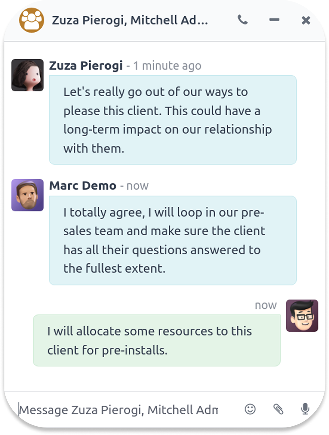Whether it is a quick update or a detailed project thread, Discuss keeps everyone connected and informed. Collaborate in context without switching apps or losing focus.