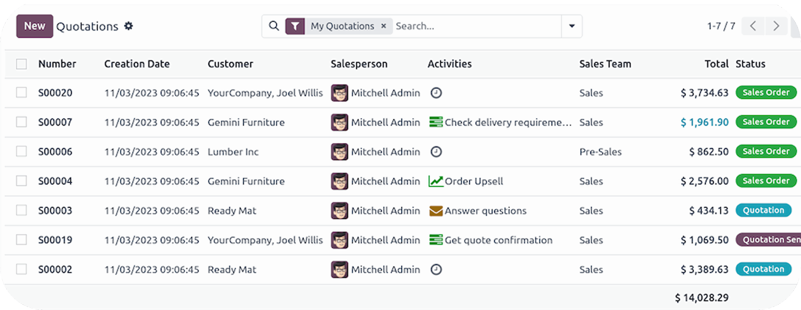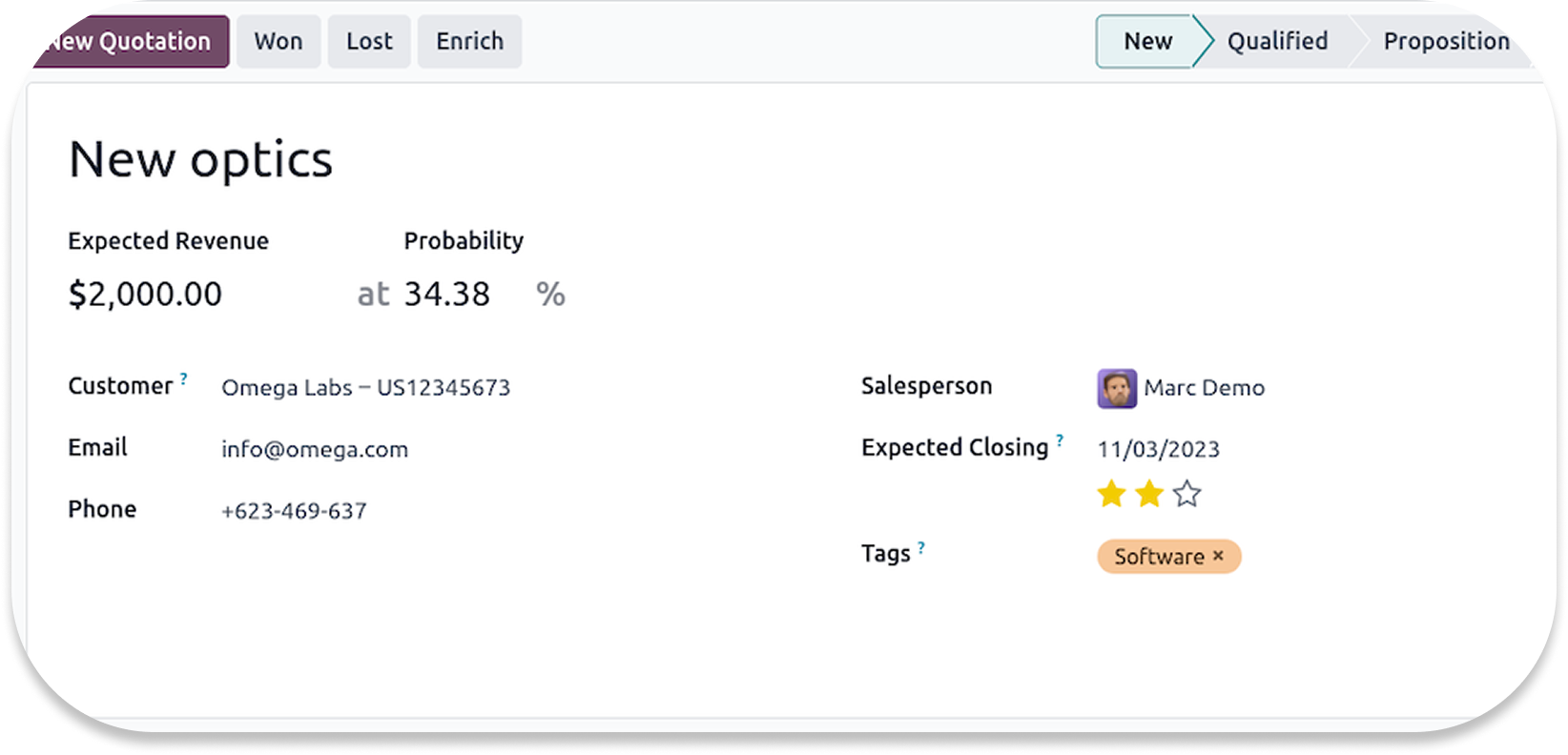 Odoo tracks every update, email, and change so you stay in control of every deal.