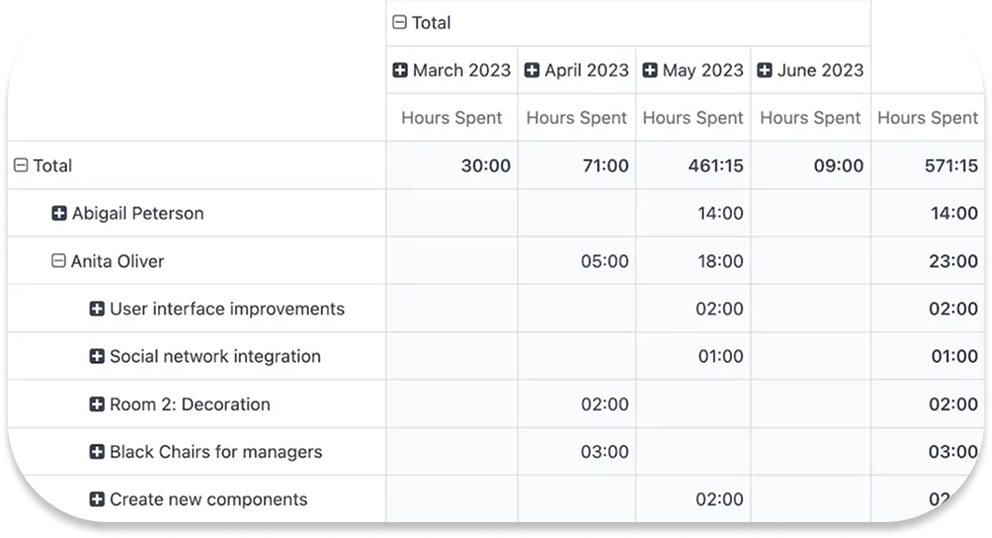 Log time effortlessly and monitor team progress across tasks and projects. Compare estimated vs. actual hours to stay aligned and efficient.